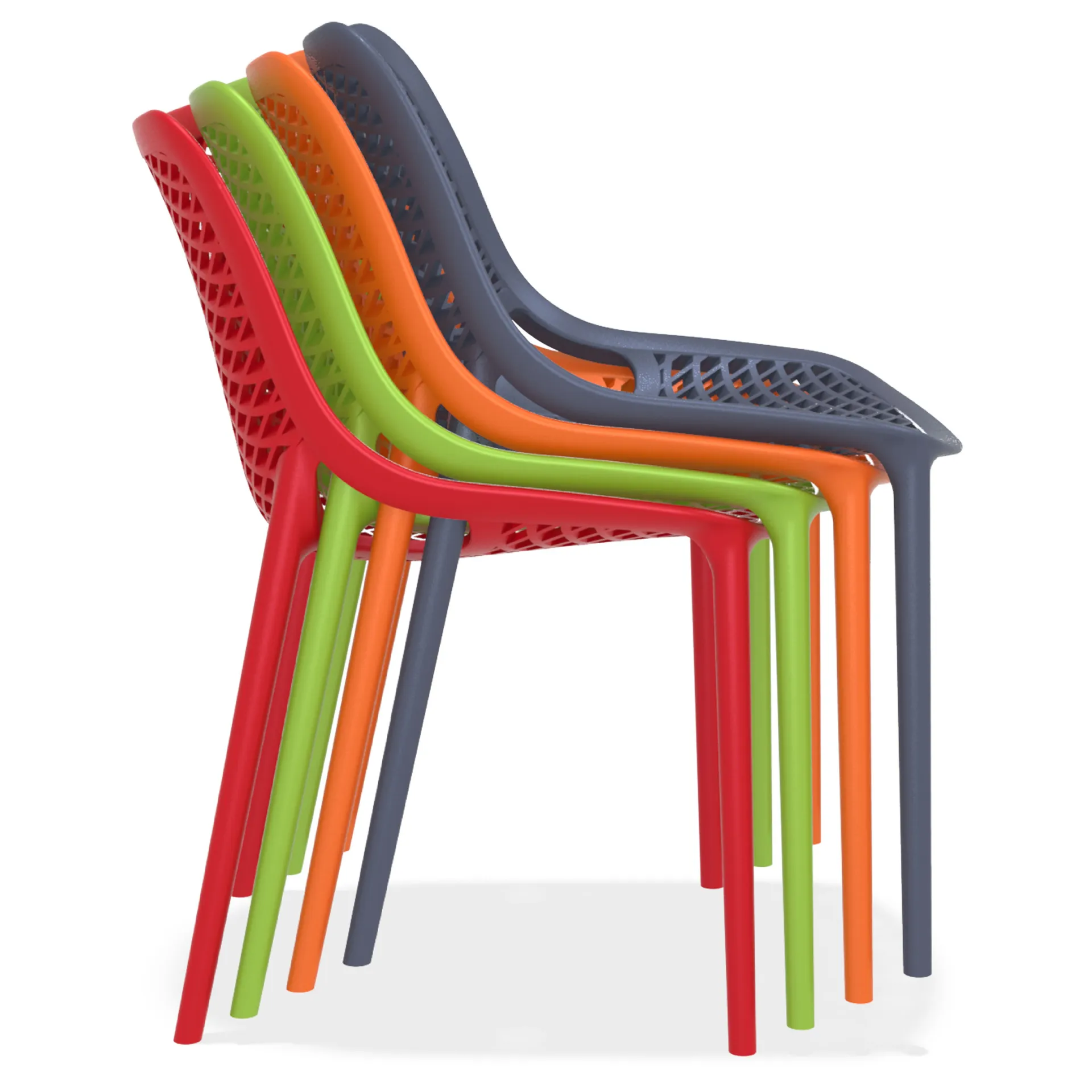 Stolica je proizvedena  jednim ubrizgavanjem polipropilena ojačanog staklenim vlaknima dobivenog najnovijom generacijom tehnologije zračnog lijevanja neutralnih tonova.